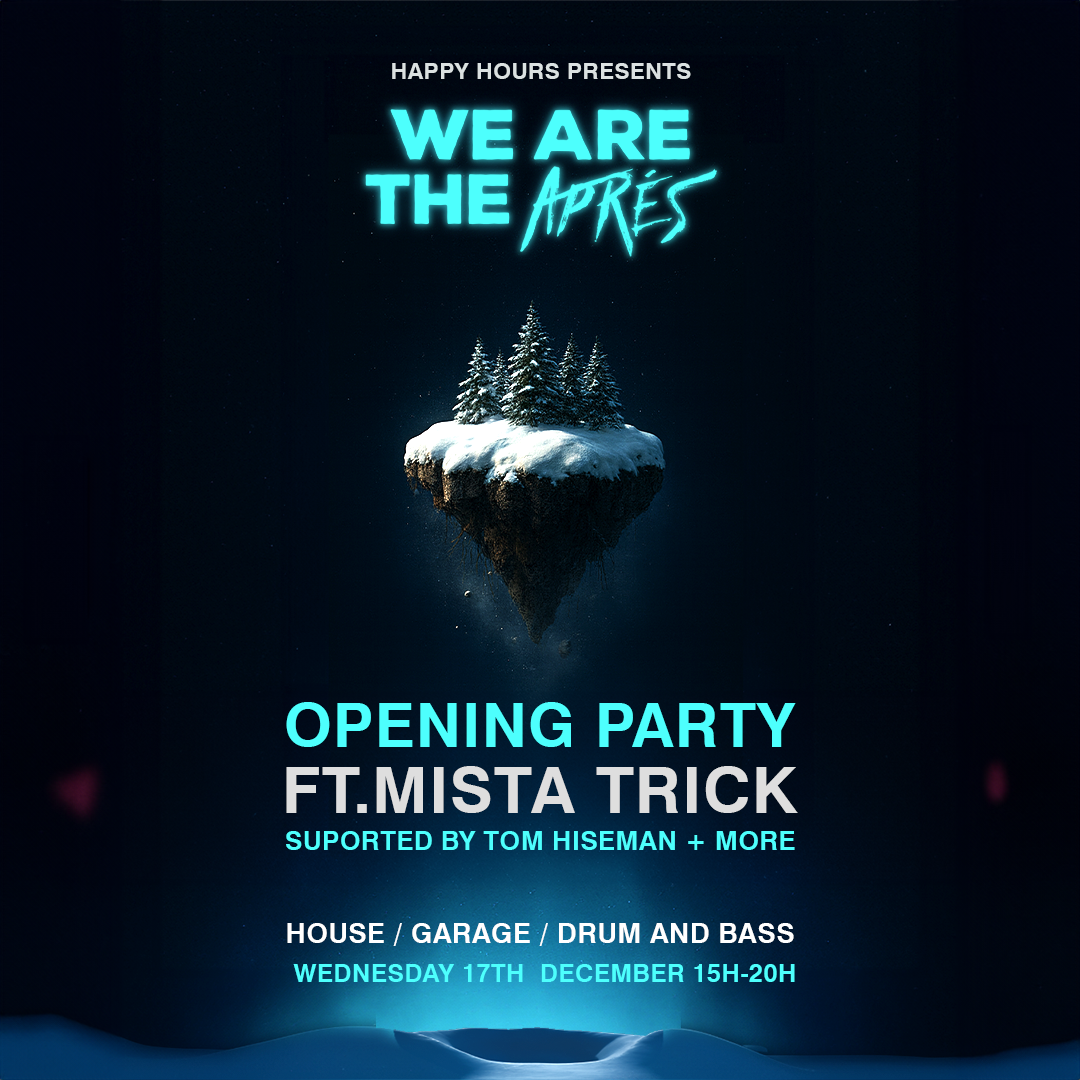 We Are The Après Grand Opening ft. the one and only Misty Trick! Renowned mash-up master and maestro of his own dance-music-inspired band, Misty Trick is coming to open the season with a bag full of dubs and party weapons. From Disco, House, UKG and DnB — he’s got it covered! You might have caught